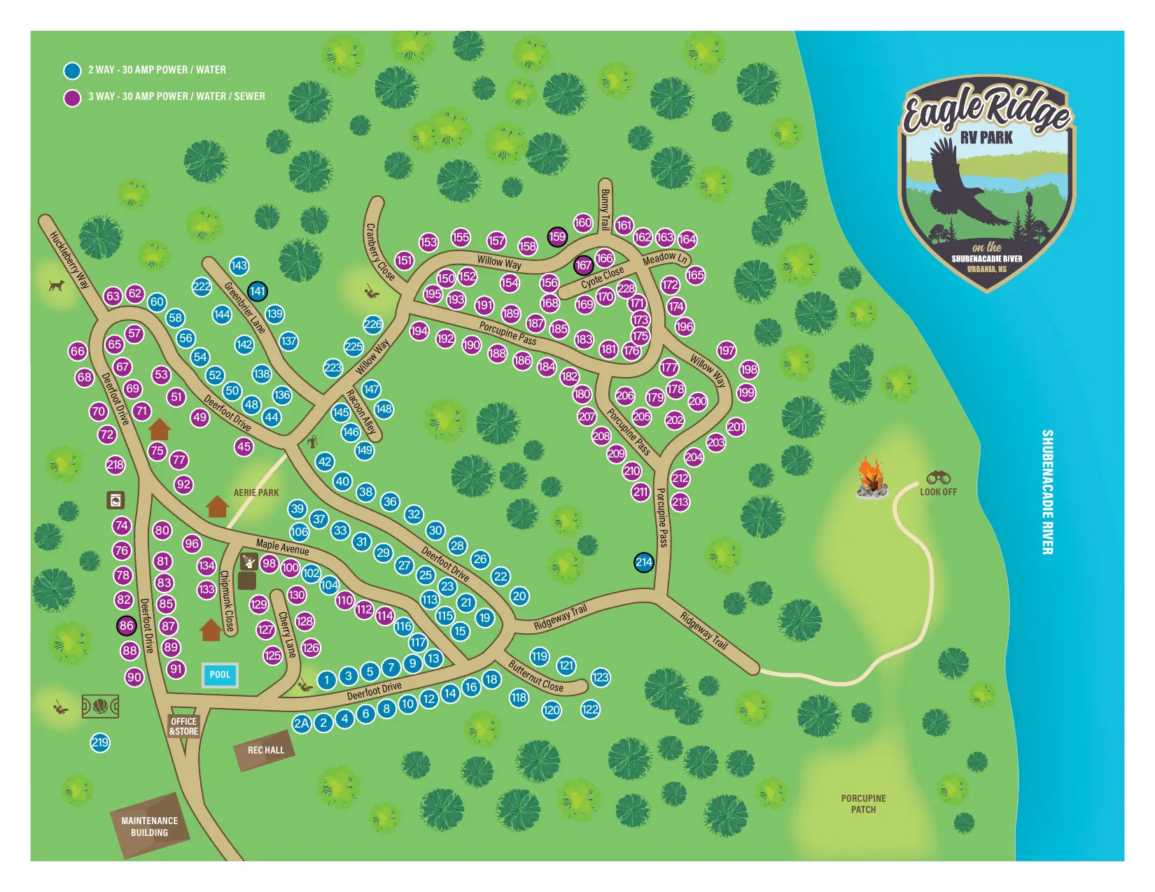 Eagle Ridge RV Park offers monthly and seasonal sites on the banks of the Shubenacadie River.